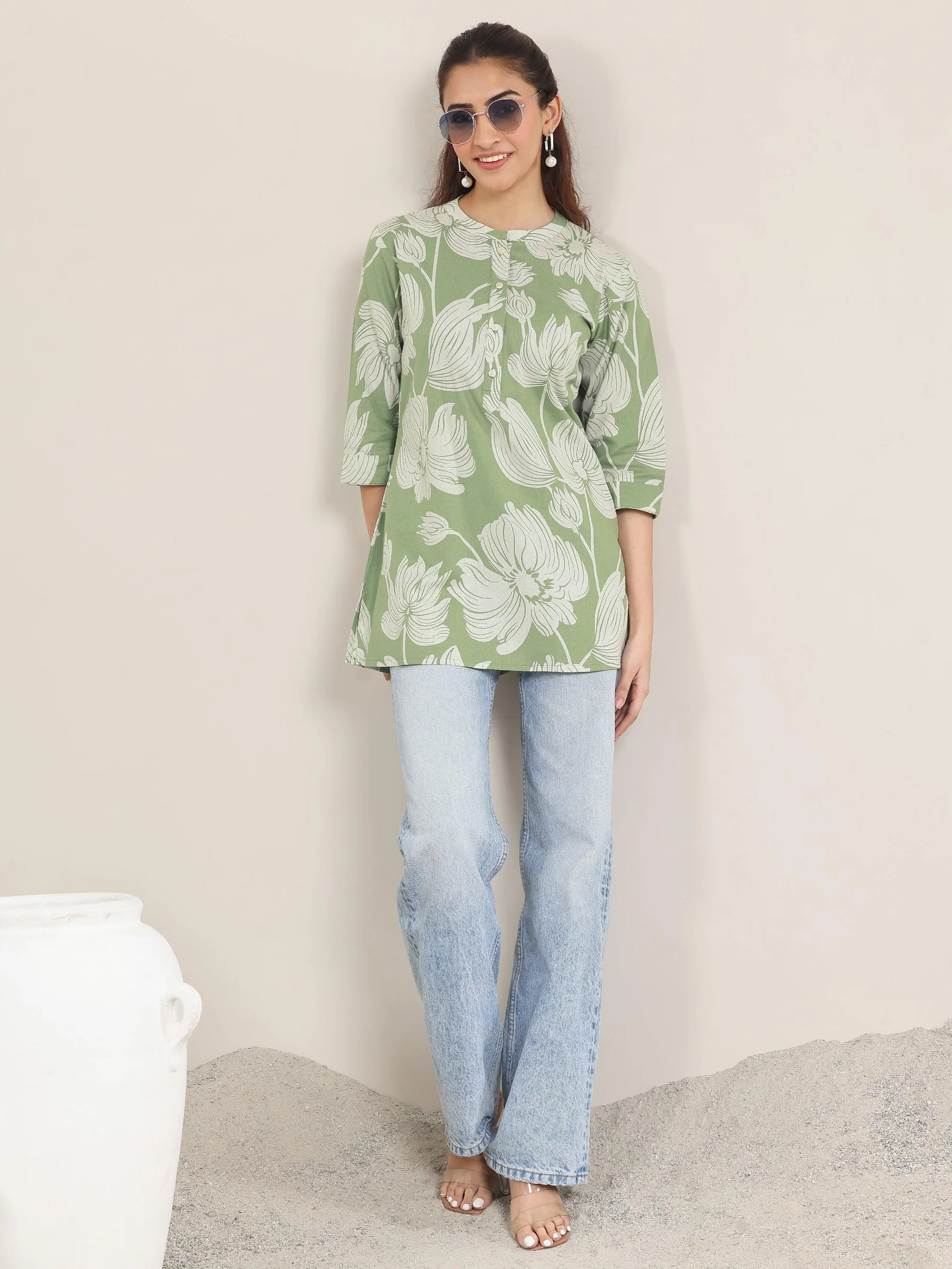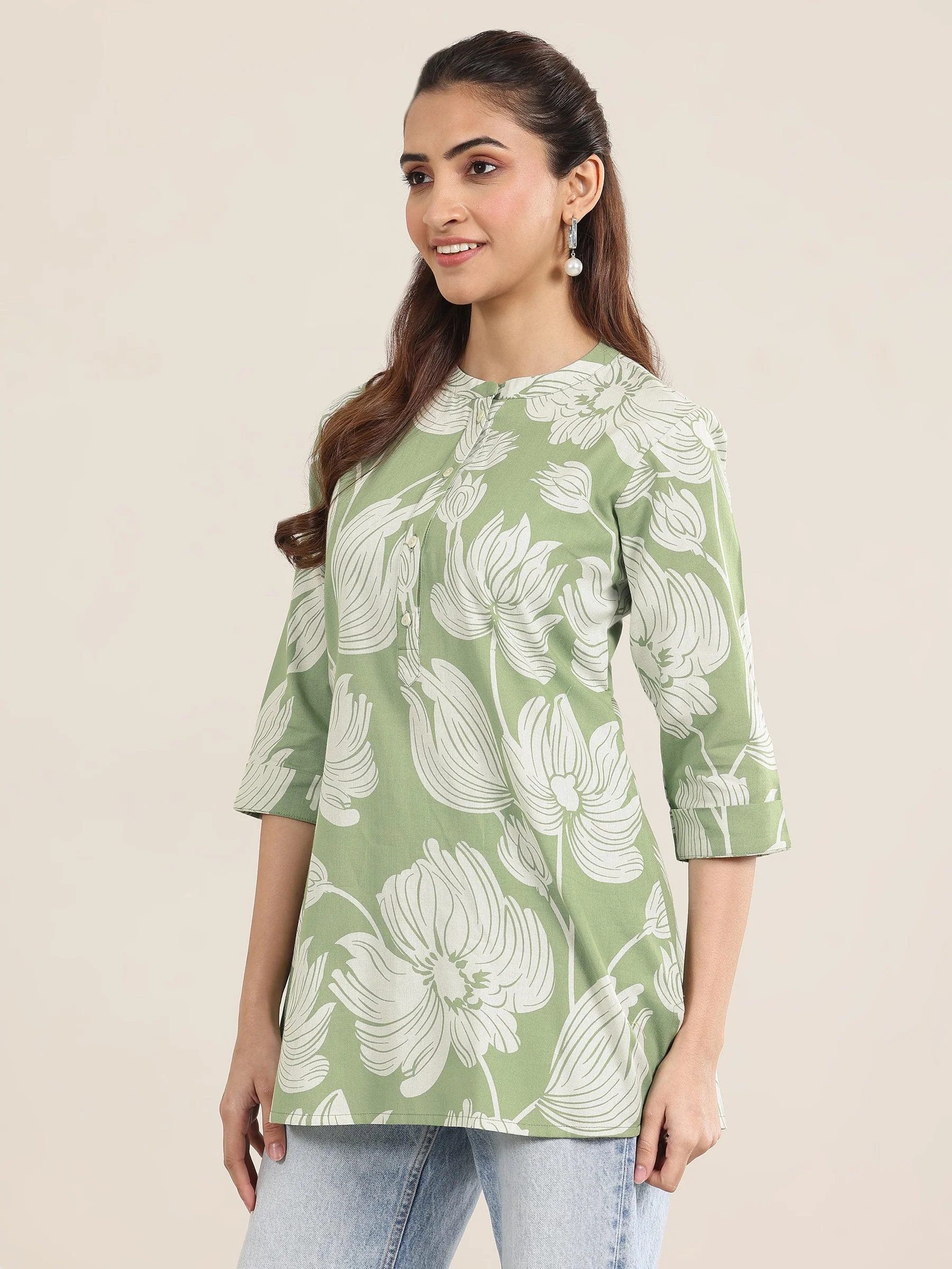 Multicoloured Printed Cotton Blend Straight Short Kurti