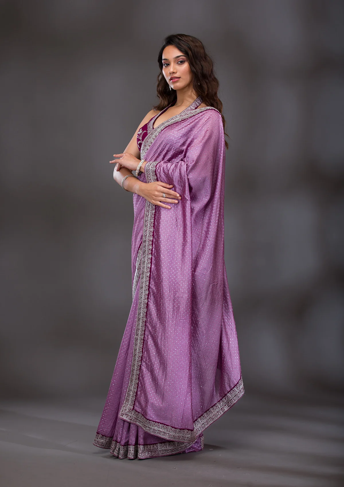 Lavender Threadwork Raw Silk Saree